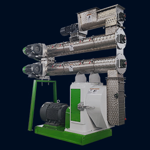 into the membrane hole of the ring mold to form shrimp feed pellets. The shrimp feed extruder is discharged from the membrane hole through the squeezing, shearing, and kneading action of the screw, and its volume instantly increases to form puffed feed particles.